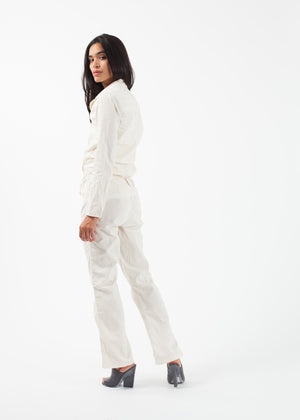 The Pip Jumpsuit is borrowed from the artist's smock, and reinvented. Lightweight and appropriate for all occasions. Button placket closure at front. Rope tie at waist. Pip-Squeak Chapeau. Color Natural. 100% Cotton. Made in U.S.A. Ashley is wearing a Small.